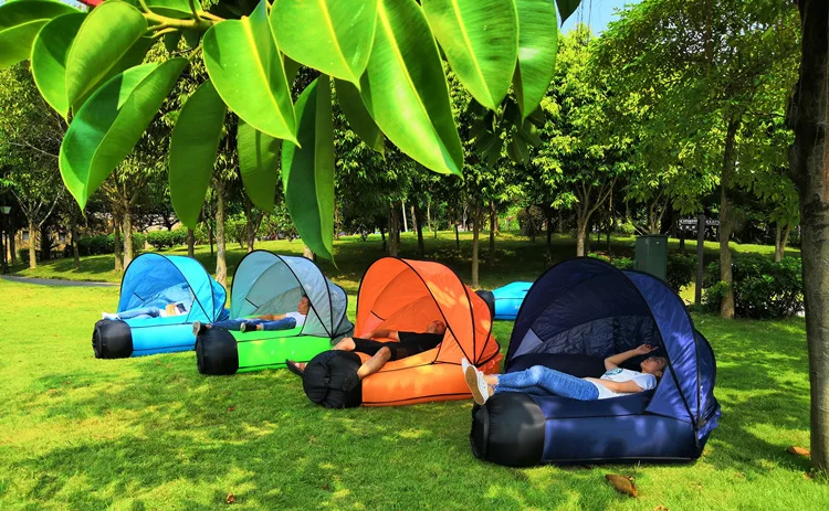 Portable Camping Beach Unique Sunshade Design Inflatable Couch Air Sofa Lounger Inflatable Beach Chair – Ultimate Comfort Anywhere!