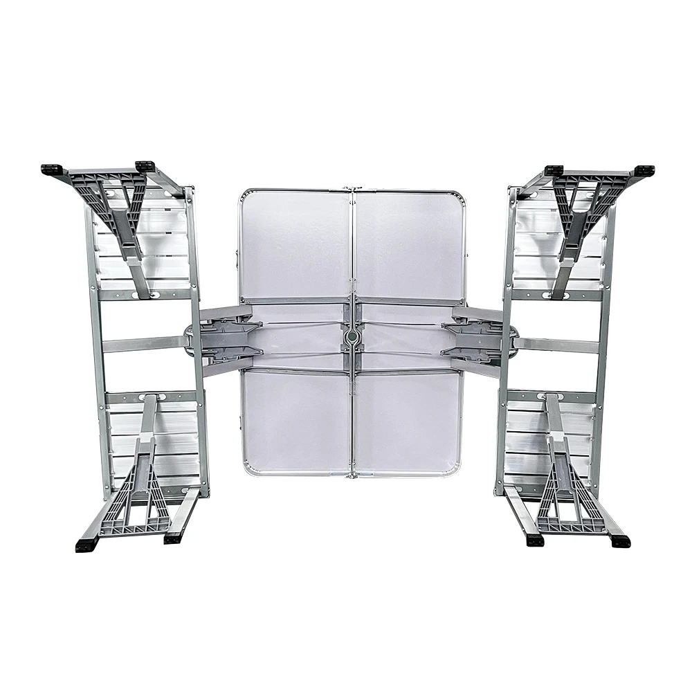 Crafted from premium aluminum alloy, this folding picnic table resists rust, scratches, and harsh outdoor conditions. Unlike flimsy plastic or heavy wooden tables, its sturdy aluminum frame ensures stability even on uneven terrain. The smooth, weatherproof surface wipes clean effortlessly, making post-meal cleanup a breeze.