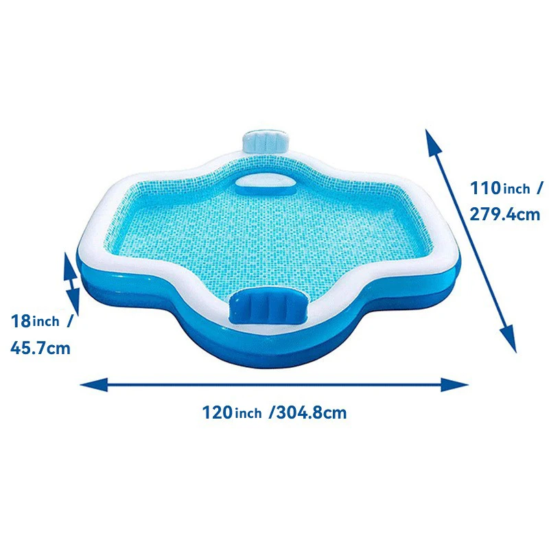 🏊 Backrest Seat Large Size Inflatable Pool – Perfect for Kids and Adults