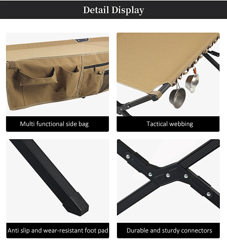 - Terrain Stability: Reinforced joints and non-slip legs keep the cot steady on grass, rocks, or sand—rest without worrying about wobbling.