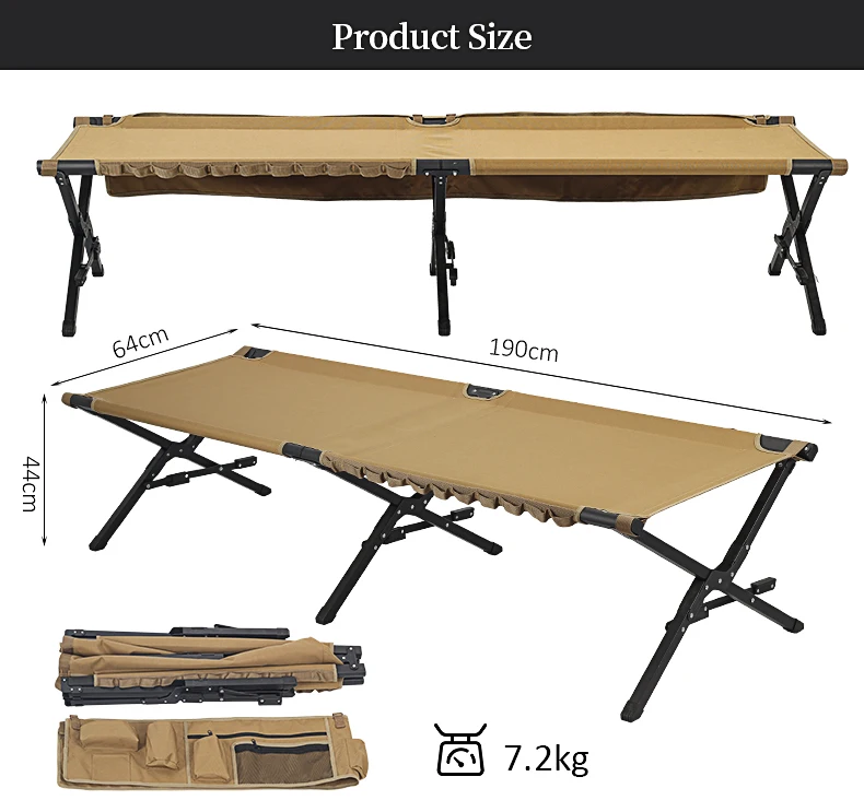Camping Bed Cot with Side Pocket – Ultralight, Durable & Compact for Outdoor Adventures When it comes to outdoor comfort, nothing beats a well-designed Camping Bed Cot with Side Pocket. Whether you’re planning a weekend camping trip, a multi-day hiking adventure, or just need a portable resting solution for the backyard or beach, this camping cot provides the perfect balance of strength, convenience, and packability. Designed with outdoor enthusiasts in mind, it ensures that you always have a comfortable and elevated sleeping space, no matter where your journey takes you. Premium Comfort in the Outdoors Sleeping directly on the ground often means dealing with uneven surfaces, cold drafts, or moisture. A Camping Bed Cot with Side Pocket eliminates these issues by lifting you above the ground, offering a stable and supportive sleeping platform. The cot is built with a breathable fabric surface that promotes airflow, keeping you cool during warm nights and providing insulation when temperatures drop. Unlike bulky air mattresses, it doesn’t deflate or lose firmness, ensuring reliable comfort night after night. Ultralight but Extremely Durable Crafted with high-strength aluminum or steel alloy frames, this camping bed cot is engineered to be both lightweight and durable. Many models weigh under 6 kilograms, making them easy to carry on backpacking trips or road adventures. Despite its ultralight design, the cot can support weights of up to 150 kilograms, making it suitable for most adults. Reinforced joints and non-slip legs ensure stability on various terrains—from grassy campsites to rocky trails—so you can rest with peace of mind. Compact & Foldable Design Portability is essential when it comes to outdoor gear, and this Camping Bed Cot with Side Pocket excels in that regard. The foldable structure allows it to collapse into a compact size that fits easily into a carry bag. This means you can store it in your car trunk, attach it to your backpack, or tuck it away in a closet when not in use. Setup and takedown are quick and intuitive, requiring no special tools. In just minutes, you’ll have a sturdy cot ready for use, making it perfect for spontaneous trips or emergency situations. Functional Side Pocket for Essentials One of the most convenient features is the built-in side pocket. Instead of fumbling around in the dark for your phone, flashlight, or book, you can keep essentials right within reach. The pocket is designed with multiple compartments, providing organized storage for personal items such as water bottles, chargers, or sunglasses. This thoughtful addition enhances the practicality of the cot, especially for campers who value organization and easy access to necessities. Multi-Purpose Applications While designed for outdoor camping, this cot’s versatility extends to many different settings: Camping & Backpacking: Lightweight design makes it ideal for carrying along long trails. Beach & Picnics: Elevates you off the sand and grass, keeping you clean and comfortable. Emergency or Guest Bed: Perfect as a quick, space-saving sleeping solution at home. Hunting & Fishing Trips: Provides comfort during long outdoor stays. Travel & Road Trips: Compact size fits easily in RVs, campers, or even small cars. Why Choose This Camping Bed Cot with Side Pocket? Comfortable & Elevated Sleeping Surface – No more rocks, roots, or uneven ground. Ultralight & Compact – Easy to carry and store. Durable Frame Construction – Built to last through rugged outdoor use. Quick Setup & Foldable – Simple, tool-free assembly. Convenient Side Pocket – Keep your essentials safe and accessible. The Perfect Companion for Every Adventure Investing in a Camping Bed Cot with Side Pocket means investing in better rest and more enjoyable outdoor experiences. Whether you are a weekend camper, an experienced trekker, or simply someone who enjoys lounging under the stars, this cot is designed to deliver unmatched comfort and reliability. Its combination of ultralight portability, robust durability, and practical design features makes it a must-have for any outdoor gear collection. Upgrade your camping experience today with a Camping Bed Cot with Side Pocket—because quality rest is the foundation of every successful adventure.