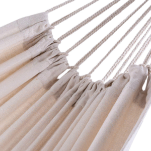Crafted from high-density canvas fabric, this hammock swing is built to withstand outdoor conditions while providing a soft, breathable seating experience. The solid wood frame ensures stability and adds a rustic, natural aesthetic to any space. Whether you’re setting it up in your garden, on a patio, or at a campsite, this hammock chair is designed for long-lasting use.
