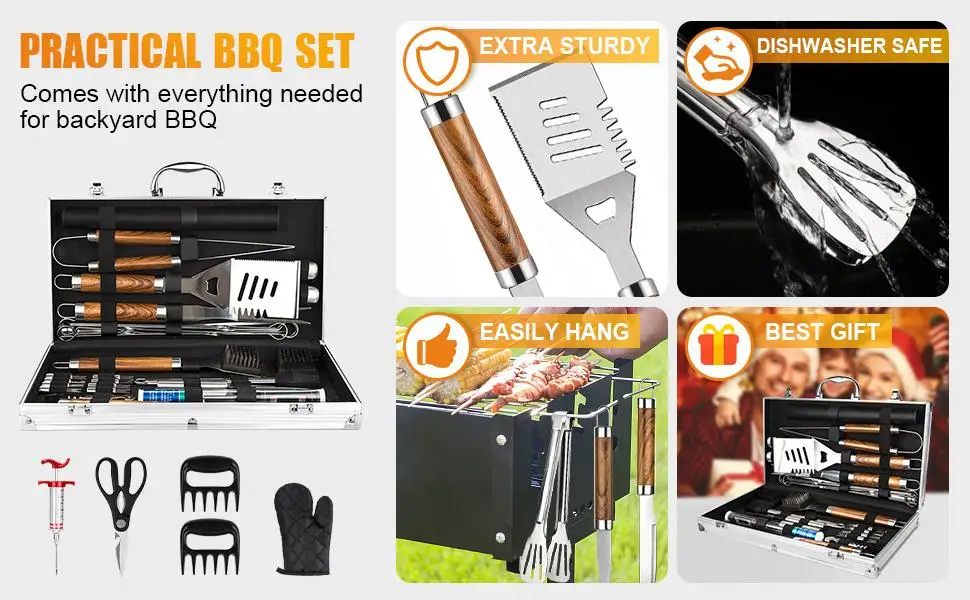 • Portable & Organized: A durable aluminum case keeps your outdoor BBQ grill accessories secure and tidy, perfect for travel and storage.