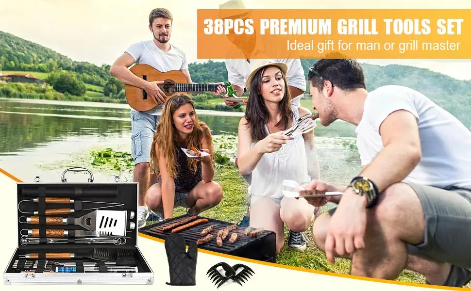 Cas BBQ Grill Accessories 38Pcs Grilling Set with Aluminum Thermometer Mats for Camping Barbecue