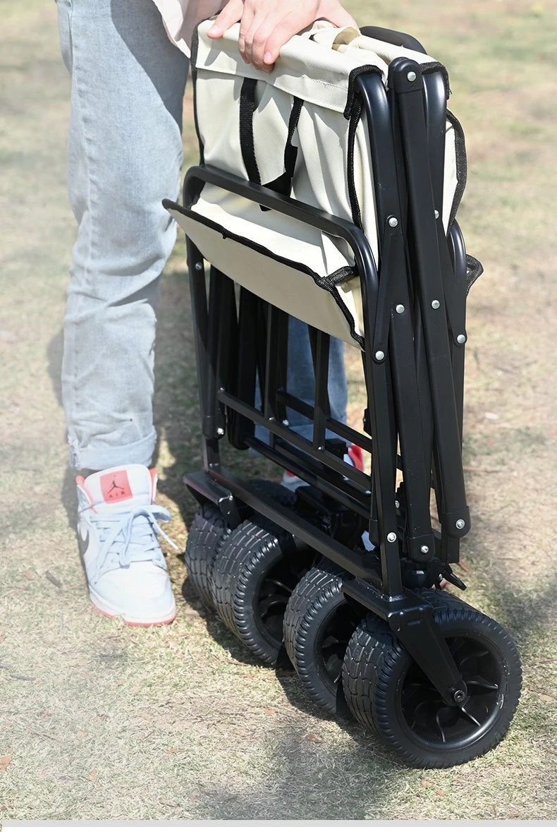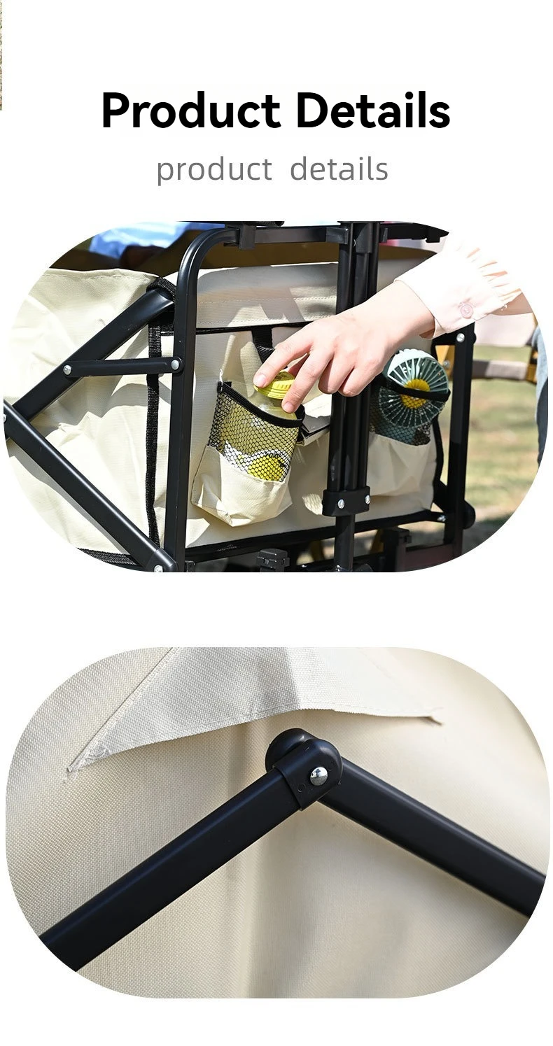 The Foldable Picnic Camping Wagon is not just for camping – it’s a multi-purpose utility cart that adapts to your lifestyle. Use it as a beach wagon for umbrellas and towels, a garden trolley for soil and plants, or a sports gear carrier for weekend tournaments. Its versatility makes it an essential tool for families, gardeners, and outdoor enthusiasts alike.