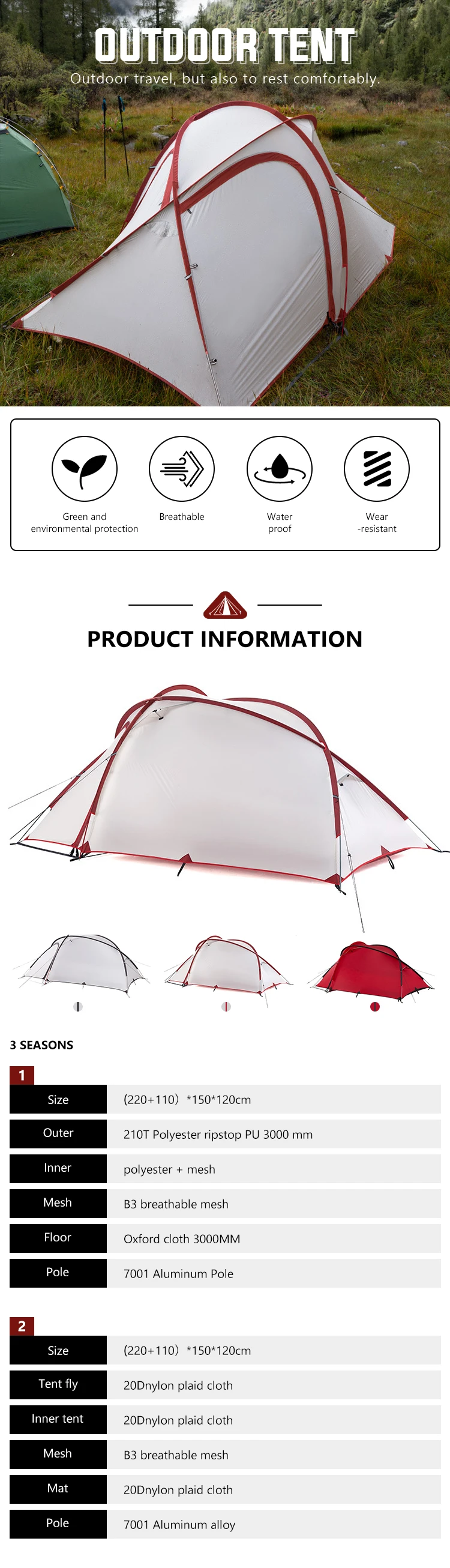 - 2-Person Dome Tents: Compact for couples or solo backpackers (easy to set up, lightweight).