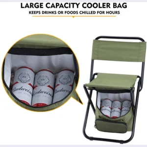 Featuring an integrated insulated lunch bag, our Outdoor Portable Folding Chair combines seating and storage in one compact design. The insulated compartment keeps your beverages and snacks fresh, making it perfect for long fishing trips, hiking breaks, or family outings. Additionally, the chair comes with a fishing backpack chair with ice bag, ensuring you have a convenient way to store and chill your food and drinks while keeping your hands free. This all-in-one functionality enhances your outdoor experience, eliminating the need for multiple bags or containers.