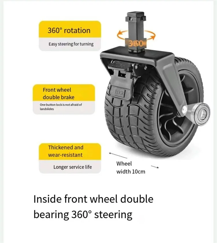 5-inch wheel, 8 inch narrow wheel, 7 inch wide wheel dual brakes, 7inch Tank Wheel