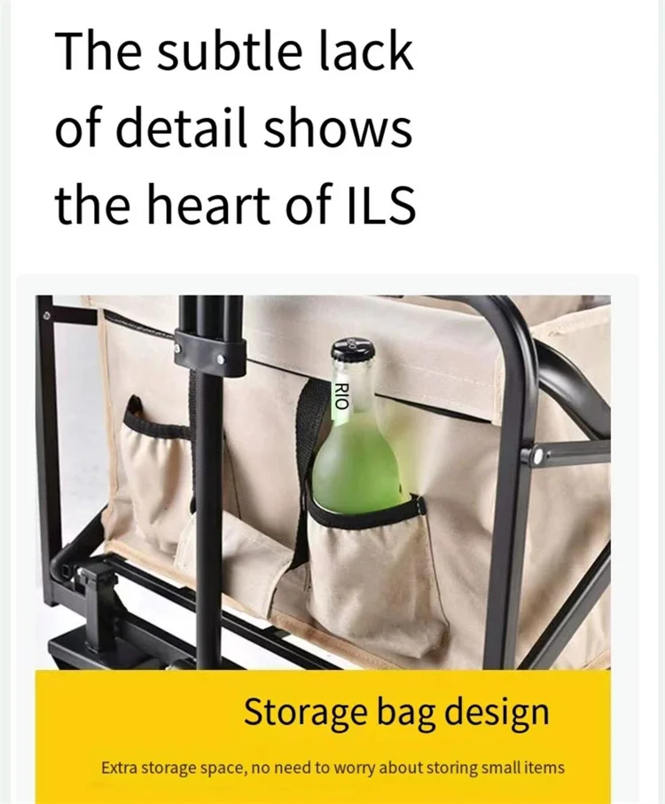 The generous cargo space of this foldable wagon provides ample room for all your belongings. Measuring approximately 36″ x 20″ x 14″, it’s perfect for transporting both bulky and small items. Multiple mesh side pockets allow you to store water bottles, snacks, tools, or sunscreen within easy reach. Whether you’re at the campsite or the farmer’s market, this wagon keeps everything organized and accessible.