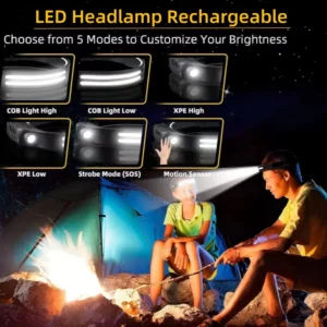 🔦 Rechargeable LED Headlamp – The Ultimate Outdoor Waterproof Motion-Sensor Light for Camping, Hiking, Fishing, and Cycling