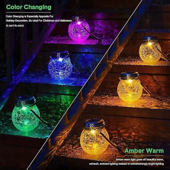 The Solar Mason Jar Light is not merely a decorative lantern; it serves as a versatile, eco-friendly, and stylish option for both outdoor and indoor ambiance. By blending the timeless appearance of a rustic crack glass ball jar with modern solar technology, this hanging lantern infuses gardens, patios, balconies, and even indoor living areas with charm and warm illumination. Developed with portability and durability as core considerations, it stands out as an excellent choice for homeowners, event planners, and outdoor enthusiasts who prioritize both aesthetics and sustainability.